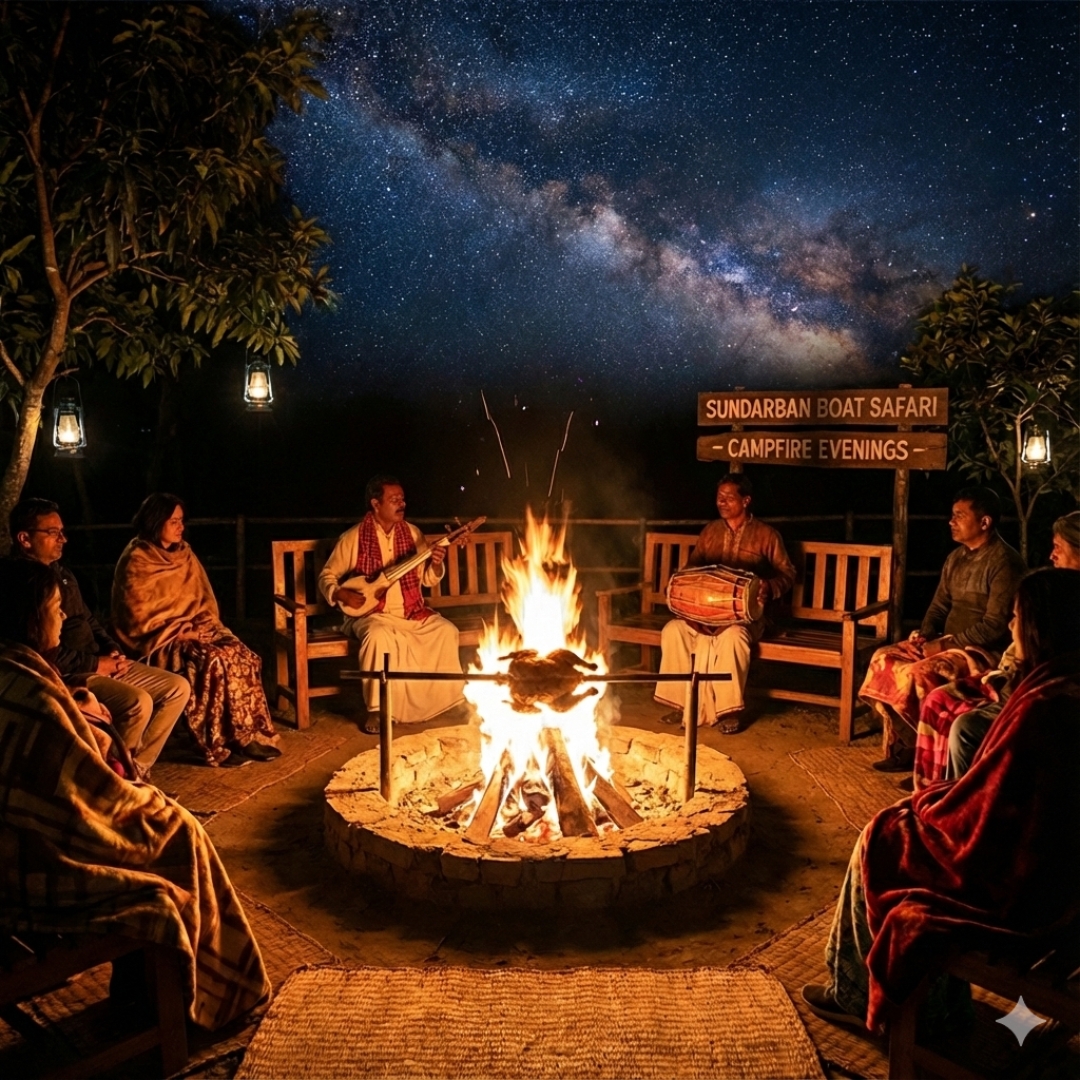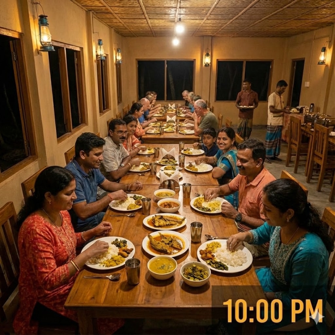 After a thrilling day of safari, unwind at our eco-resort. The evenings come alive with the rhythmic beats of Jhumur.